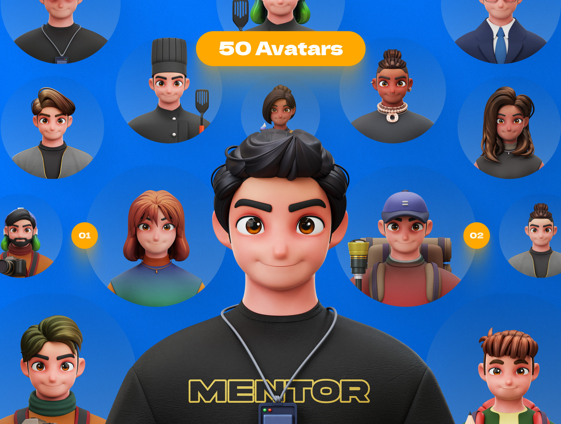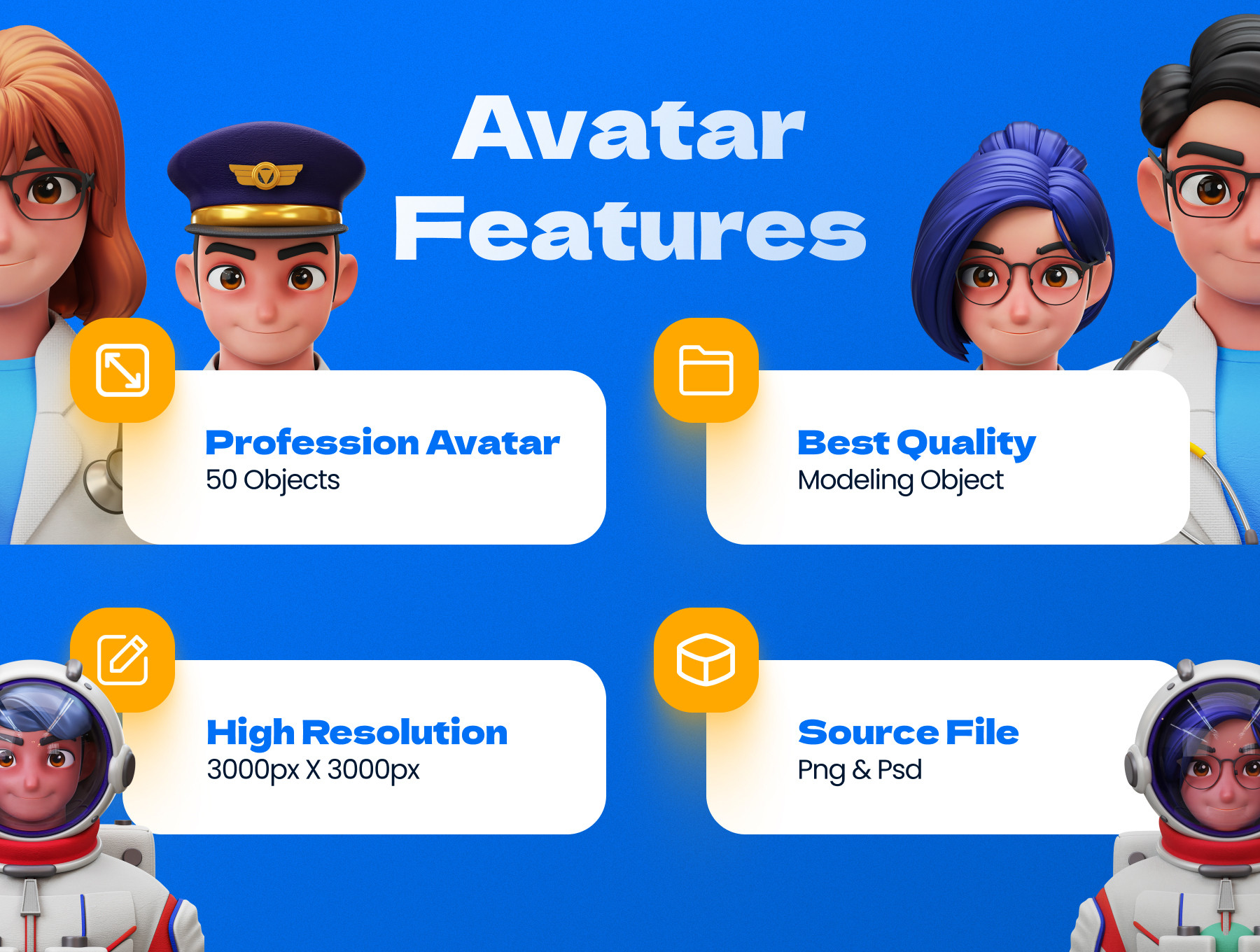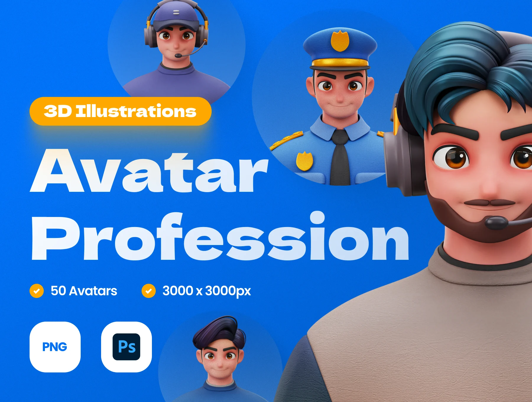 3D 头像职业插图可用于设计需求、动画、网页设计、UI 设计、演示幻灯片、海报等。