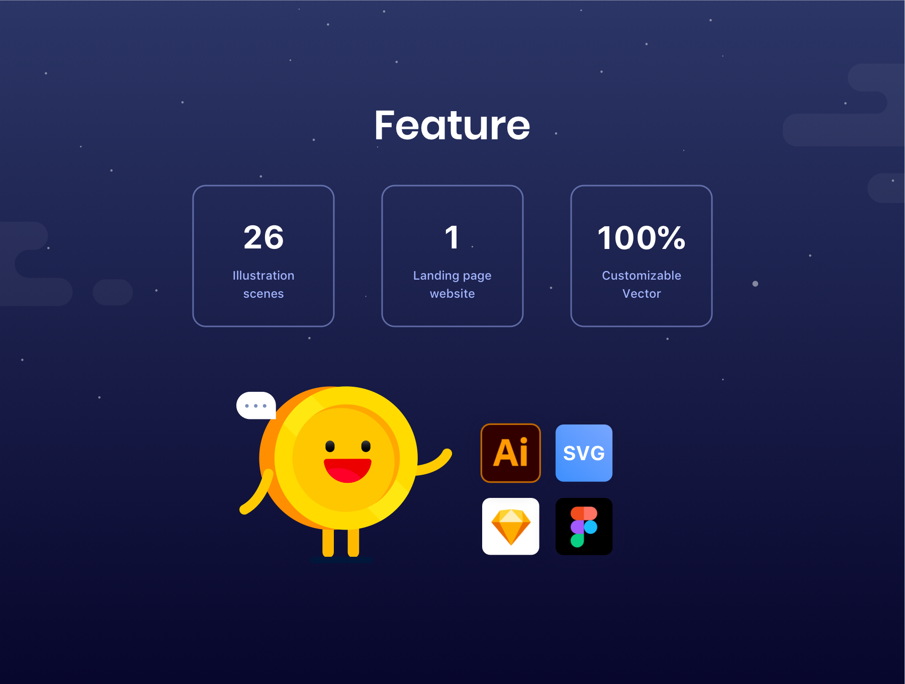 高品质插图与 Ai、Sketch 和 Figma One Cryptocurrency 商业登陆页面网站兼容