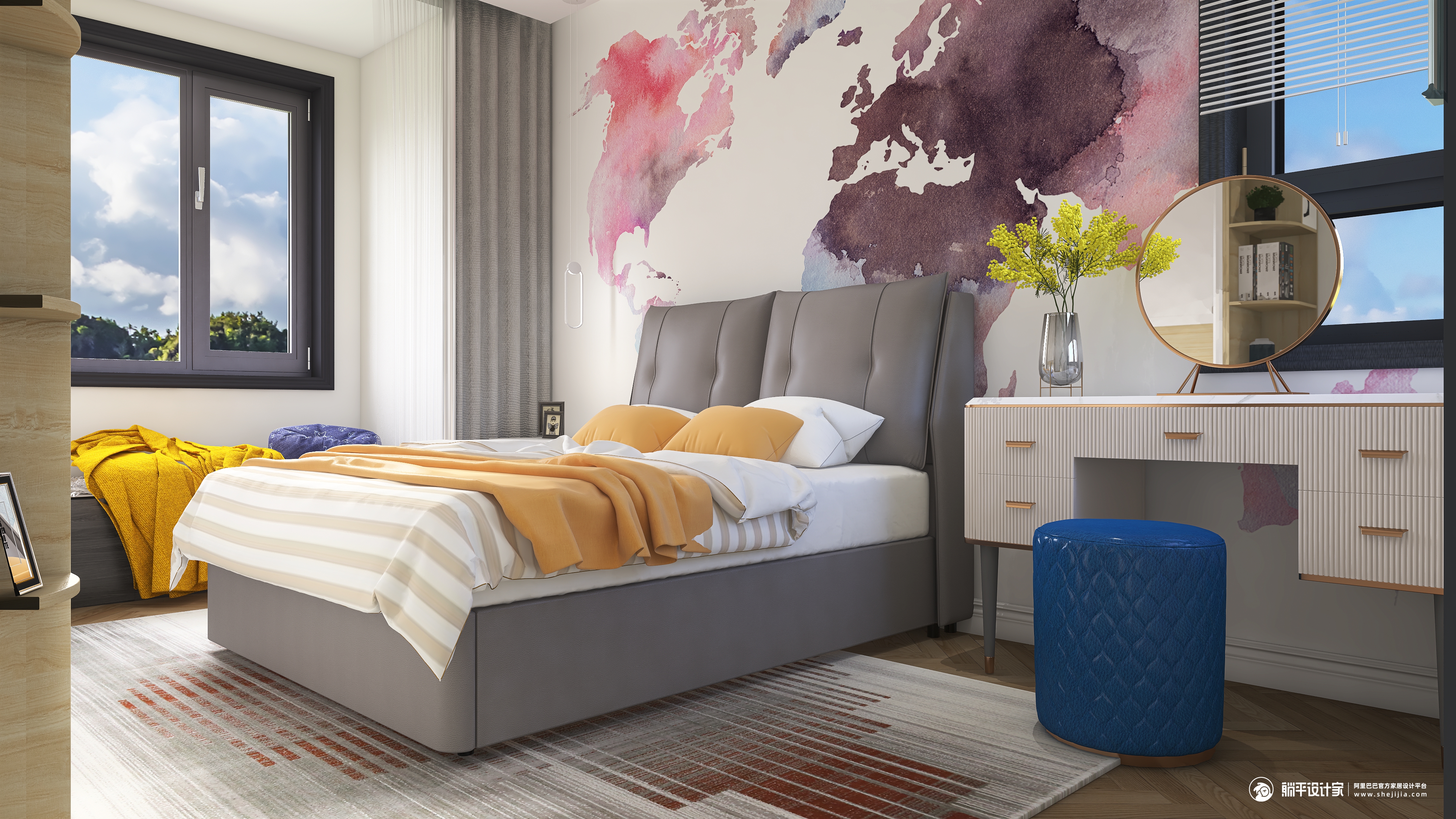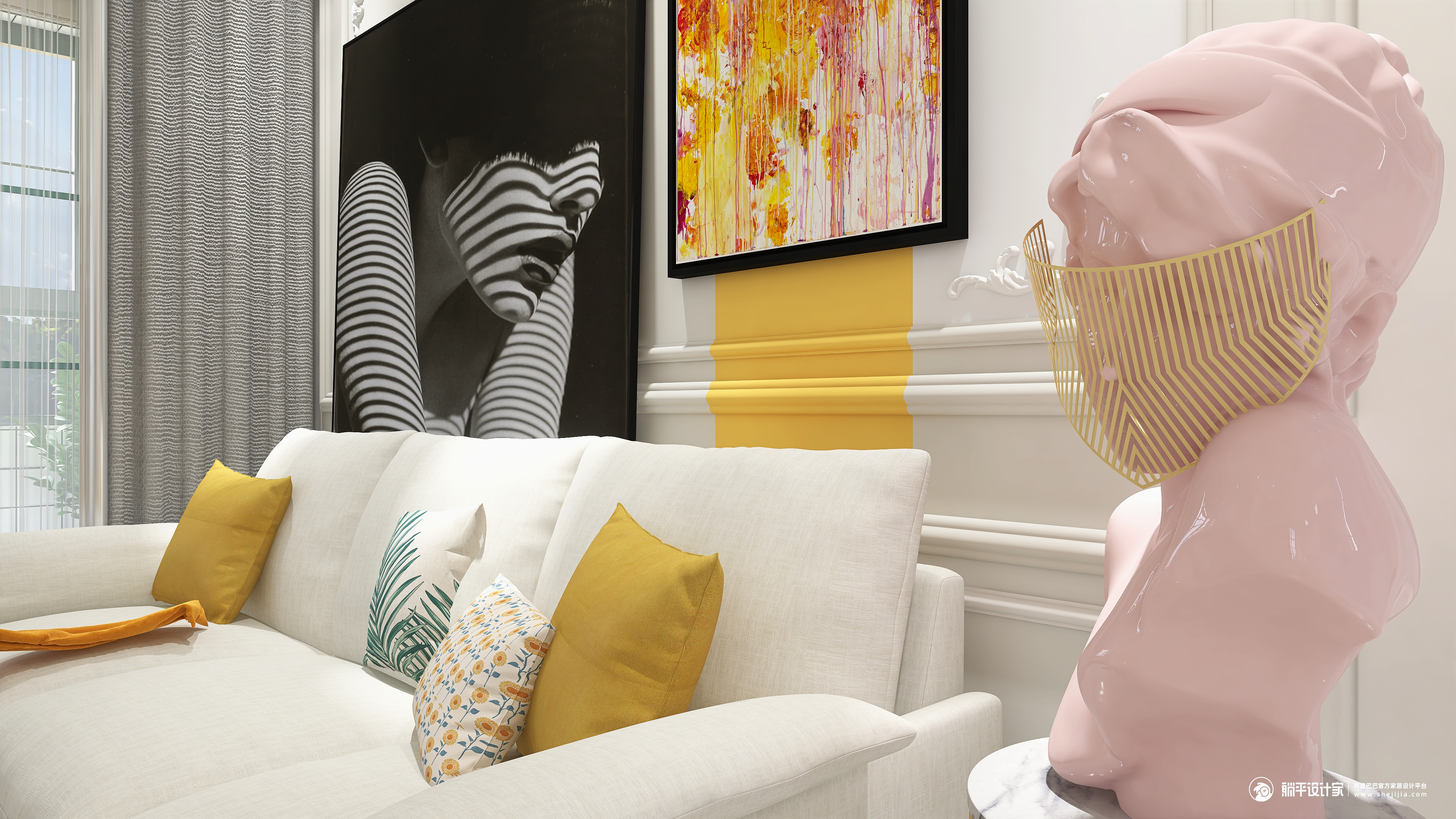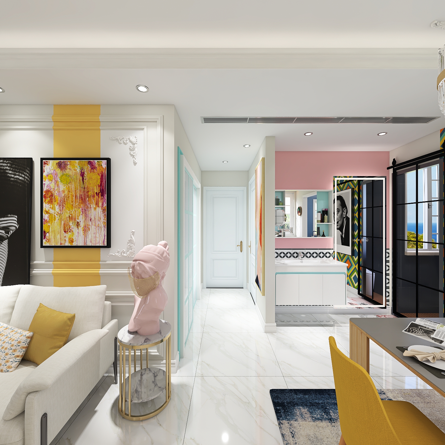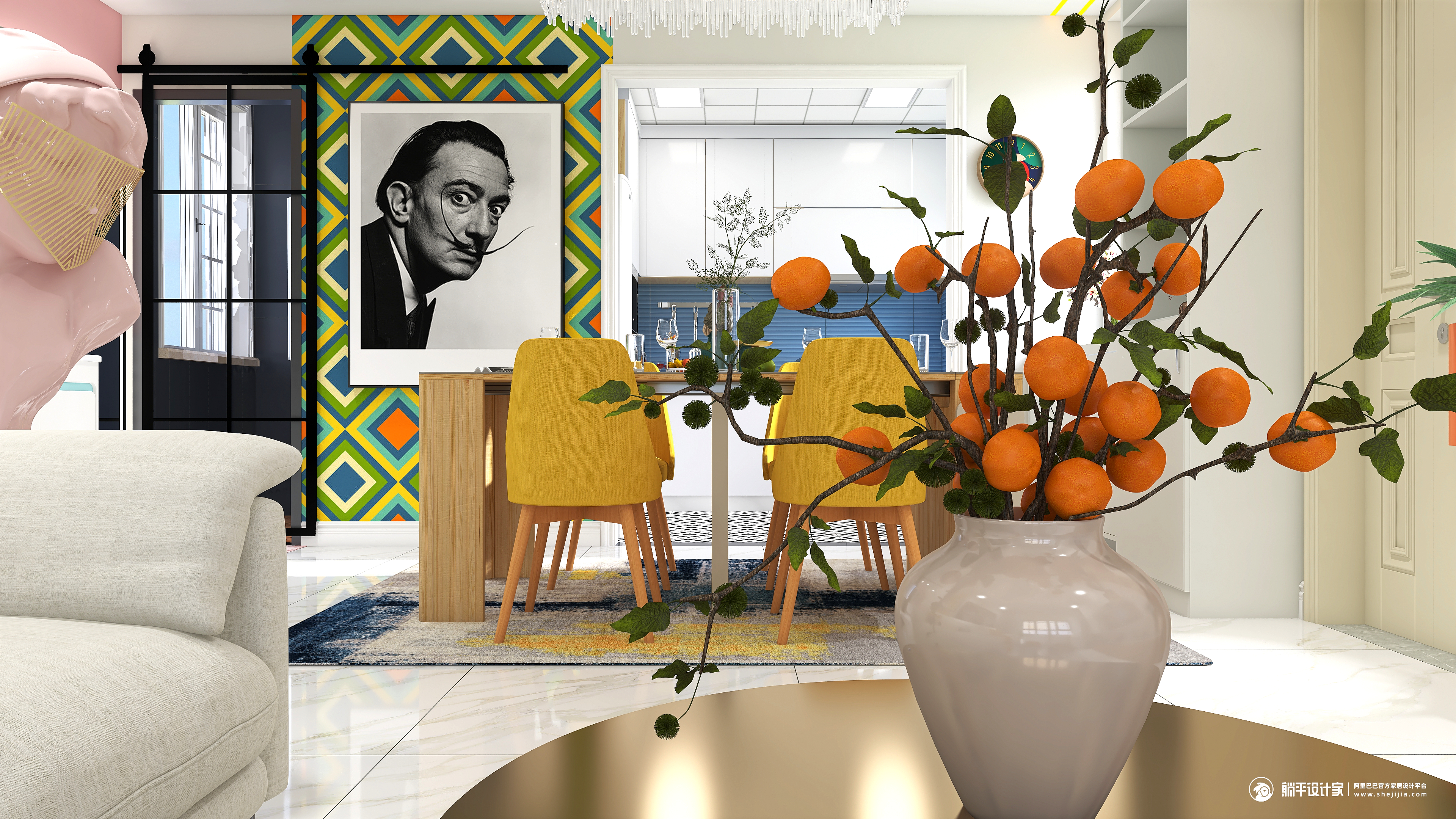 此方案设计师融合了林南所说的“烟火气”又结合“颜值控”打造出一间即实用又美观的居住空间,浓烈的色彩碰撞,活跃的生活节奏,充满了艺术气息的居家空间,符合了业主的刚需要求又满足了精神追求